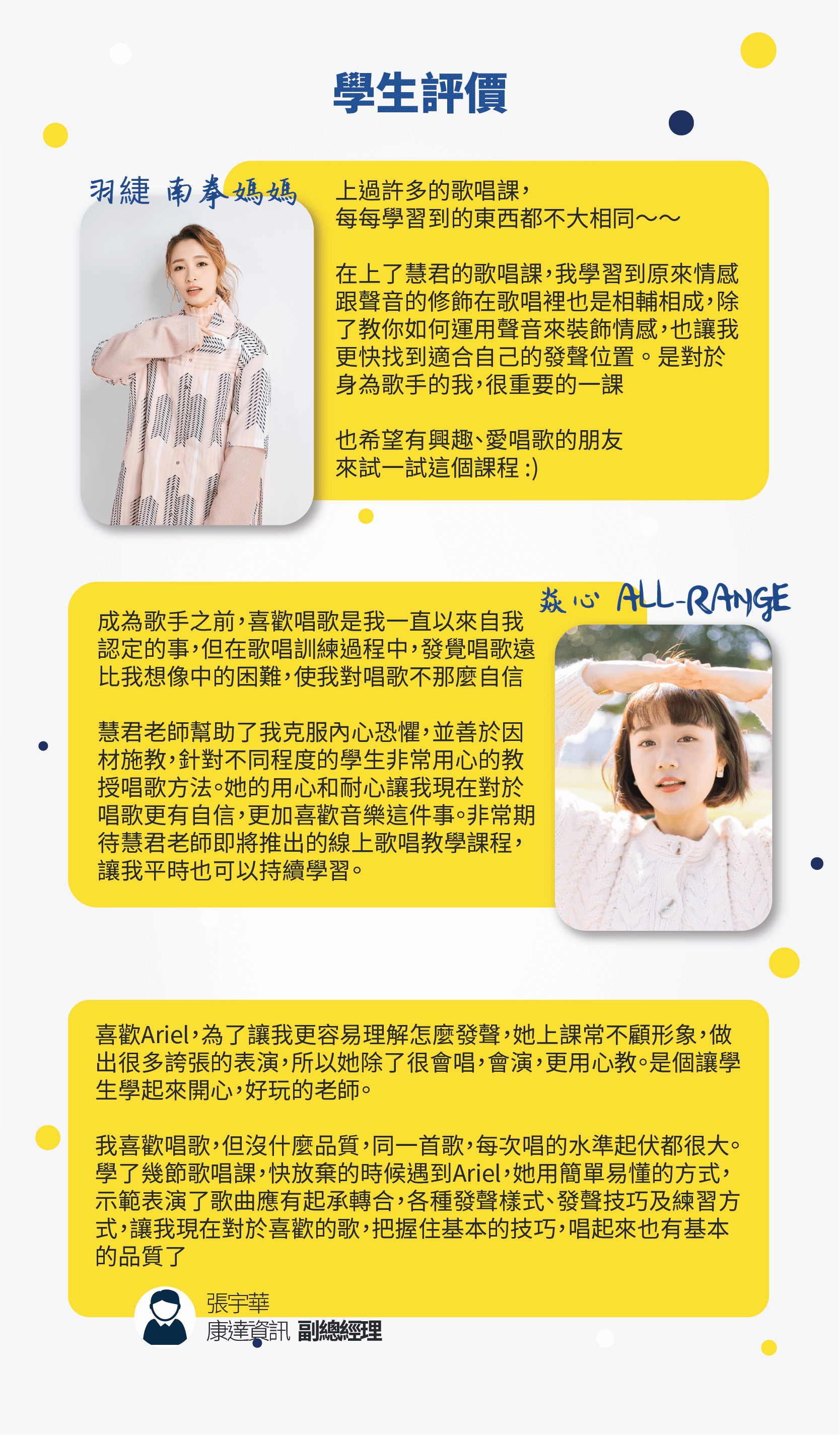 - 藝人經紀公司御用歌唱老師